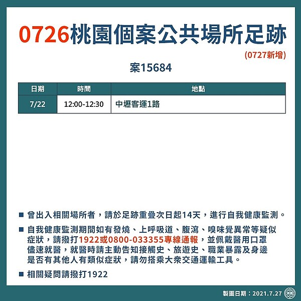 7dokfhlvwvwbdm from pgw.udn.com.tw 雖然已有不少熱心網友製作了網頁版的非官方 google maps 確診者足跡地圖,不過對於許多人想在手機上方便查看確診者足跡來說,如果有款好用、操作簡單的 app 還是更加方便的。 北市確診者足跡至高鐵、華泰名品城 world gym站前店清消 2021/7/19 17:19 (7/19 20:31 更新) 請同意我們的隱私權規範,才能啟用聽新聞的功能。